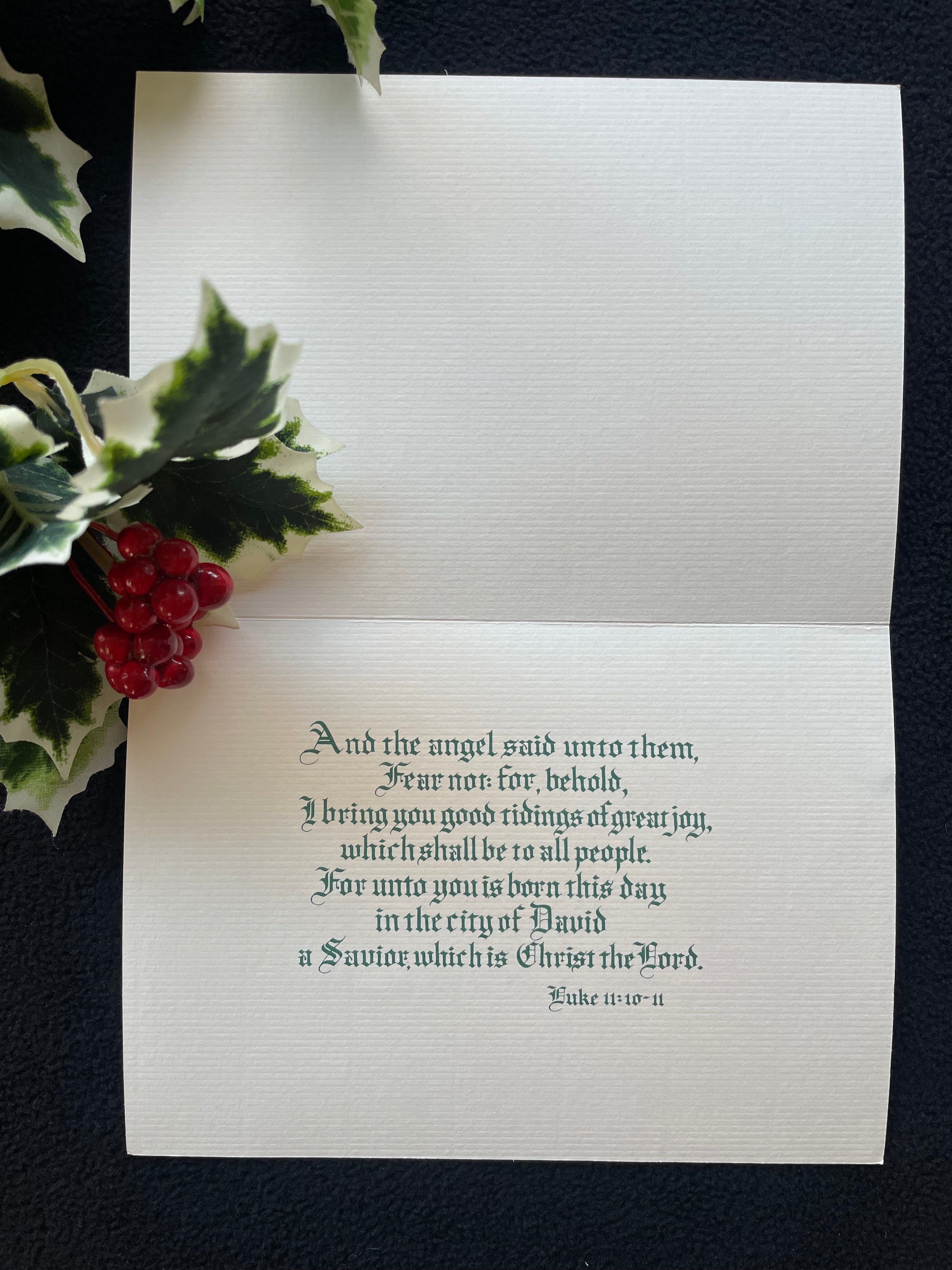 INSIDE: And the angel said unto them, Fear not: for, behold, I bring you good tidings of great joy, which shall be to all people.  For unto you is born this day in the city of David a Savior, which is Christ the Lord.